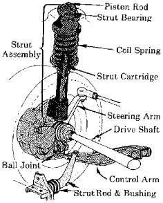 Struts serve as the steering pivots and on most applications (except certain Ford suspensions like the Mustang and T-Bird), they also carry the springs. On some rear-wheel drive strut suspensions, the wheel spindles are part of the front struts (which adds to their cost). The same is true on some front-wheel drive rear strut applications.