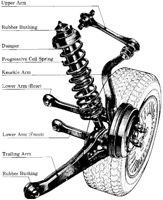 The 1986 Honda Accord has a rear double-wishbone suspension. The strut plays no role in wheel alignment in this arrangement, serving only to carry the vehicle’s weight and to dampen shocks.