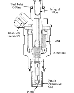 Injectors include a precision-ground needle valve and are controlled by an electro-magnetic solenoid that is turned on and off by an electric control unit. Fuel is injected only during the “on” time and is metered by the size of the opening, duration of “on” time, and fuel pressure.
