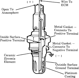 The engine computer supplies a base reference voltage of approximately one volt to the titania O2 sensor, and then reads the voltage flowing through the sensor to monitor the air/fuel ratio.