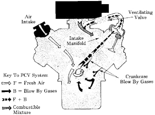 Crankcase blowby vapors are eliminated as a source of pollution by recirculating the vapors into the engine for reburning through the Positive Crankcase Ventilation (PCV) system.